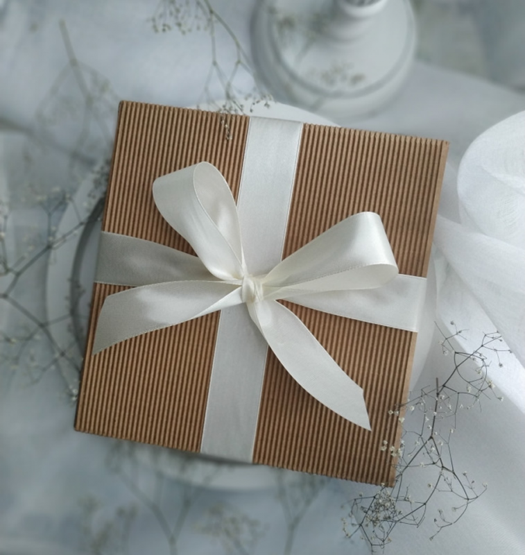 Świeca zapakowana jest w pudełko ze wstążką.