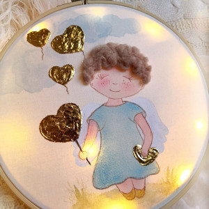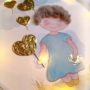- Obrazek został podświetlony lampkami led - 10 diod w ciepłym kolorze zasilanych na baterie (są już w zestawie).
