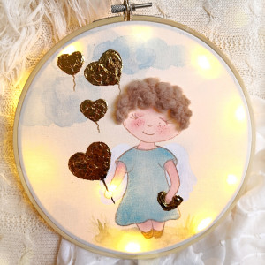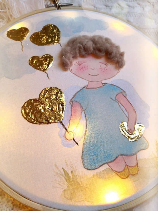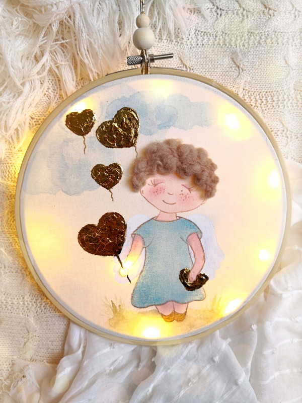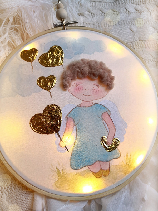 świecący obrazek z aniołem, pamiątka dla dziecka