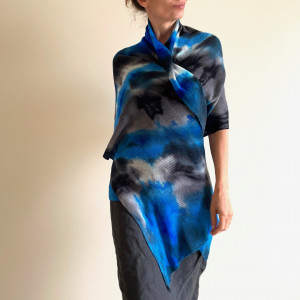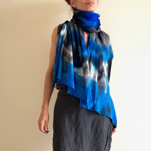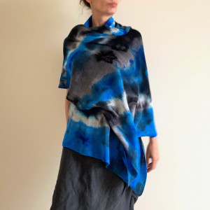 Unikatowy, ręcznie barwiony szal z wełny merino. Miękki, ciepły, milusi. Można nosić go jak szalik owijając wokół szyi lub zarzucić na ramiona jako szal. Nada charakteru każdej kreacji. Na każdy sezon. Idealny na prezent dla niej, dla niego.