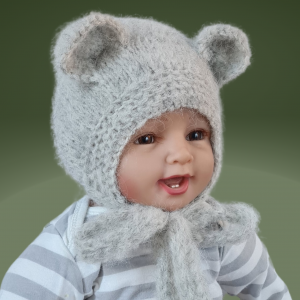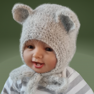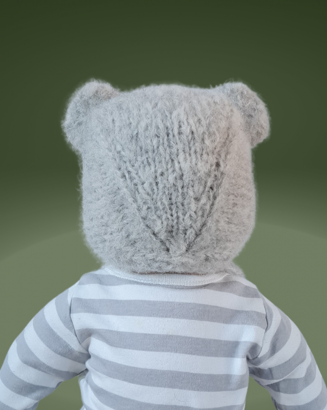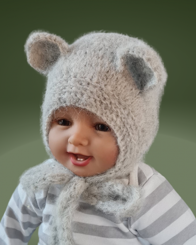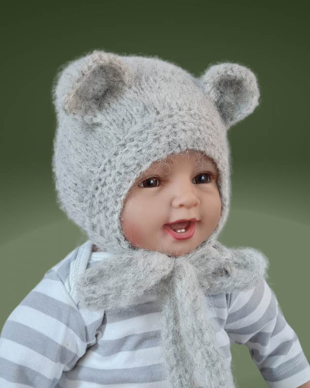 Szara Czapka Miś - Czapka Dla Dzieci z Wełny Alpaki i Merynosa