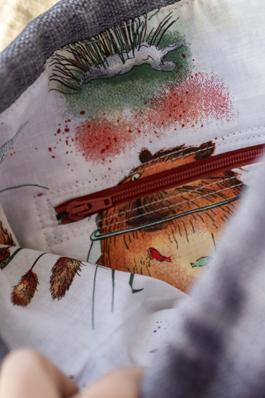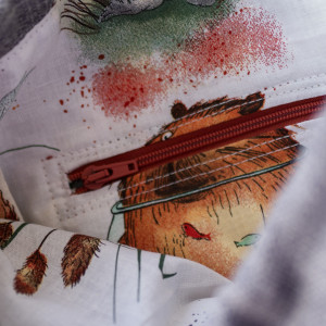 Biała, wzorzysta, bawełniana podszewka w kapibary.