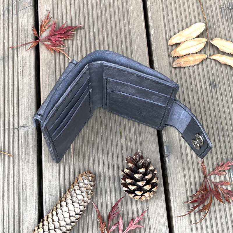 Portfel 100% wykrojony nożem i uszyty ręcznie dwoma igłami bardzo mocnym ściegiem siodłowym.