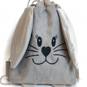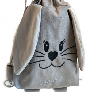 Worek wykonany z ekozamszu, w srodku bawełniana podszewka, uszy z miłego velvetu