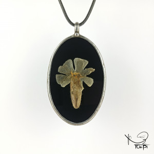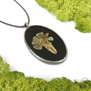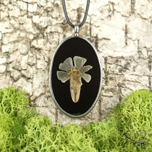 Szklany medalion elipsa z kwiatem bńca (czarny) (2)