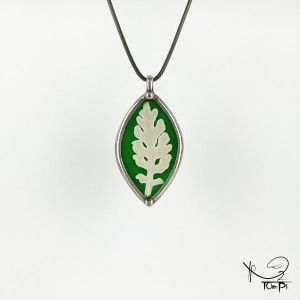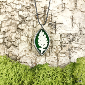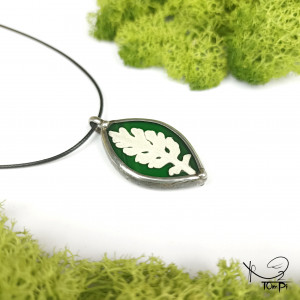 Szklany medalion elipsa z liściem starca (zielony)