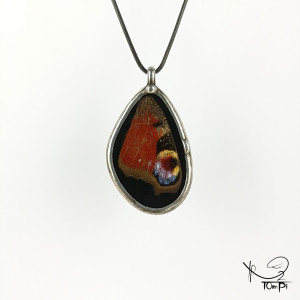 Szklany medalion eliptyczny ze skrzydłem motyla (czarny)