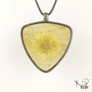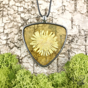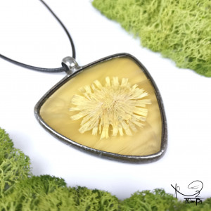 Szklany medalion trójkąt z kwiatem jastrzębca (miodowy)
