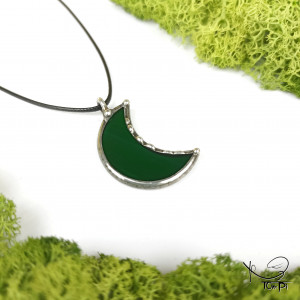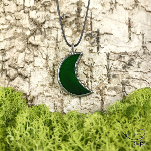 Szklany wisiorek - zawieszka księżyc (ciemna zieleń)
