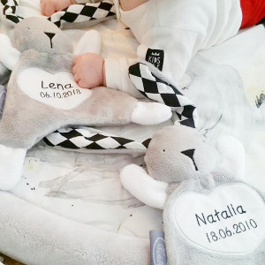 Po zakupie proszę podac imię dziecka oraz wzór materiału w uszkach, koloru serduszka i haftu.