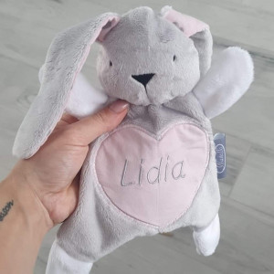 Króliczek wykonany z mięciutkiego pluszu Minky. Wszystkie elementy doszywane nie klejone oczy i buzia wyszywane