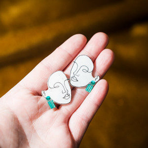 Kolczyki sztyfty, ręcznie rysowane na folii termokurczliwej.