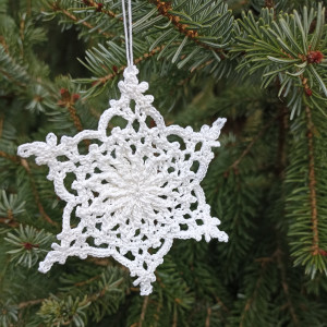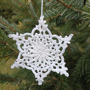 Szydełkowa śnieżynka, która pięknie ozdobi choinkę.