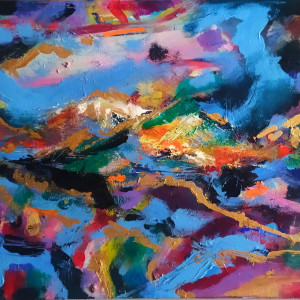 Wyjątkowy obraz abstrkacyjny namalowany farbami akrylowymi i olejnymi na płótnie.
