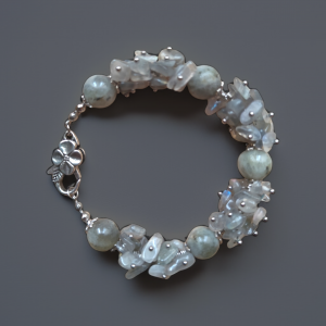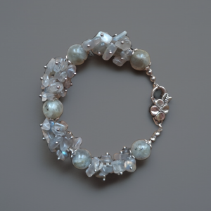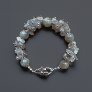 Odkryj tajemniczą moc labradorytu zamkniętą w tej wyjątkowej, ręcznie robionej bransoletce. Każdy kamień został starannie wyselekcjonowany, aby uwolnić swój magiczny blask, zwany labradoryzacją, który mieni się odcieniami szarości, błękitu i złota.