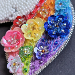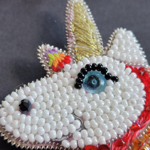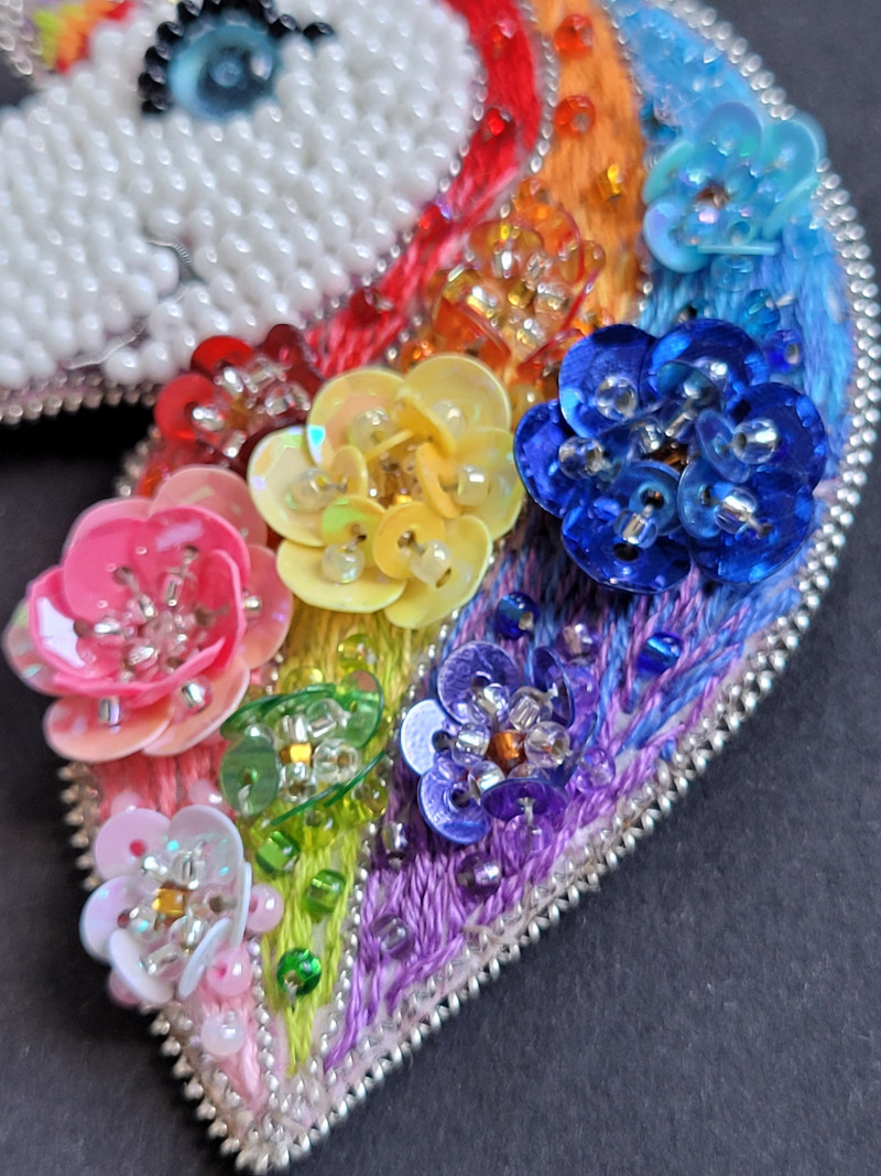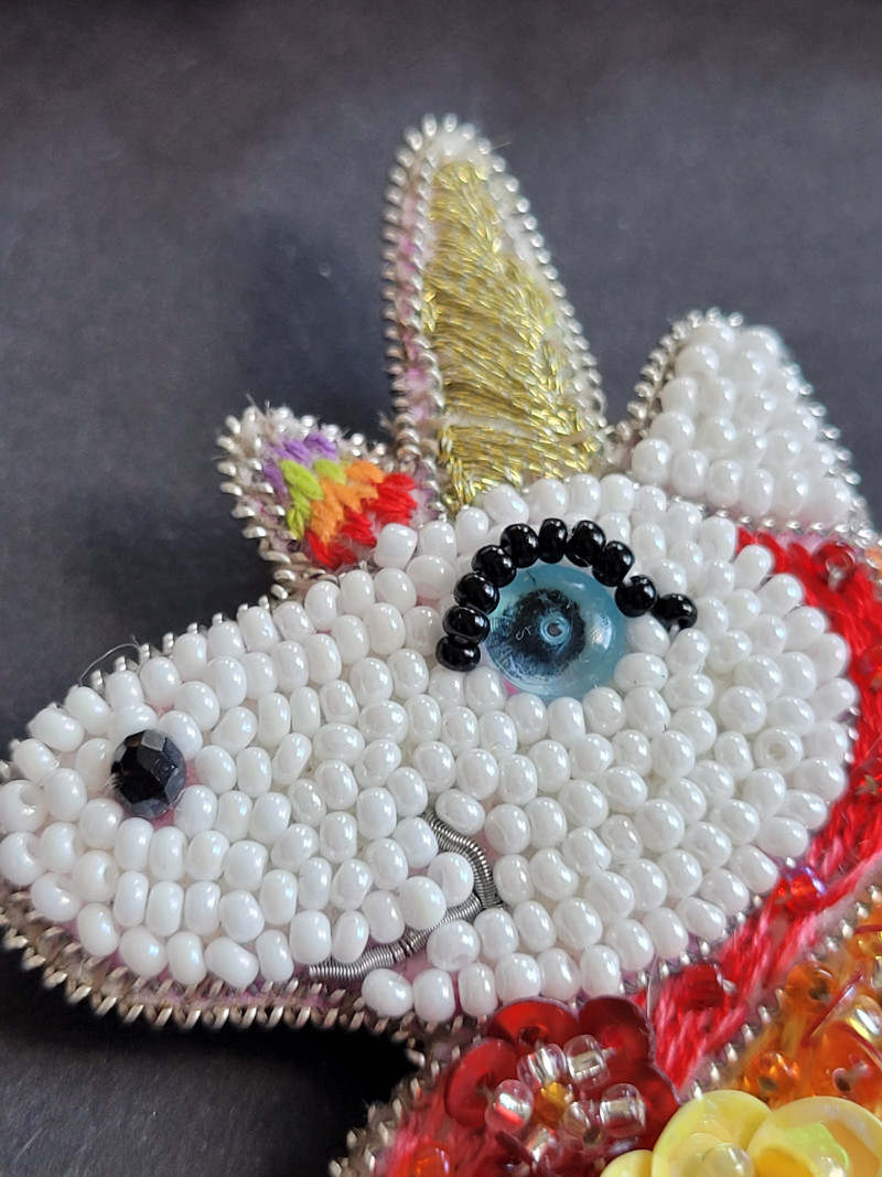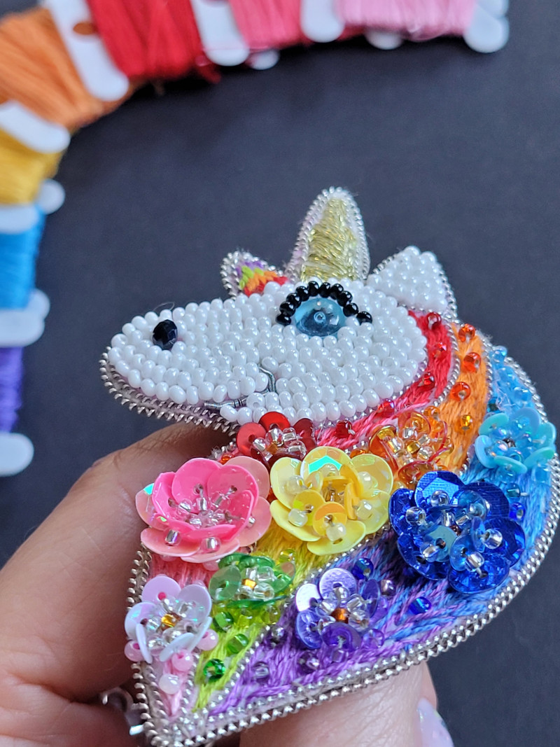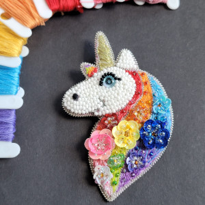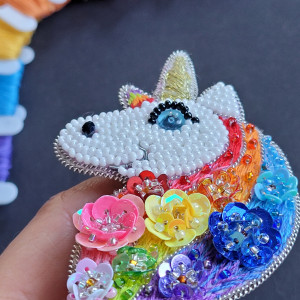 "Tęczowy Jednorożec 2" broszka haftowana cekinamy i koralikami