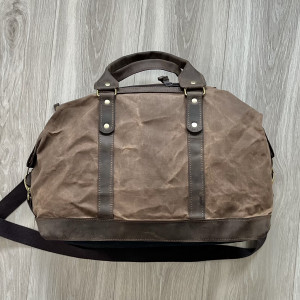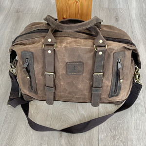 Bawełniana torba unisex z brązowej skóry i ręcznie woskowanej brązowej grubej bawełny jest idealna ażeby zmieścić nasze bagaże.