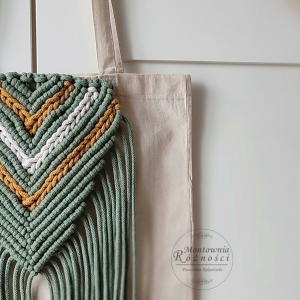 - aplikacja z makramy - szałwia, musztarda, ecru