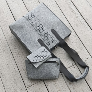 Filc 4mm 100% poliester, rączki taśma poliestrowa, okucia metalowe - kaletnicze, skóra naturalna do wykończeń