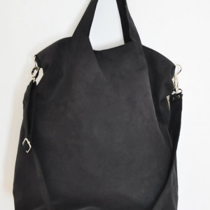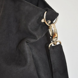 Przepastna torba wykonana z alcantary (syntetycznego zamszu). Mieści format A4 i więcej... Zapinana na magnes. W środku wykończona podszewką, z dwudzielną kieszonką. Możliwość noszenia na dwa sposoby-pasek dopinany na karabińczyki, regulowany w zakresie 125cm- 70cm wykonany z alcantary, uszy także. Wymiary: szer. w najszerszym miejscu - 47cm szer. na dole - 35cm wys. - 42cm głębokość - ok 12cm długość ucha - 40cm Czas oczekiwania na wykonanie torebki ok. 10 dni roboczych od momentu zakupu.