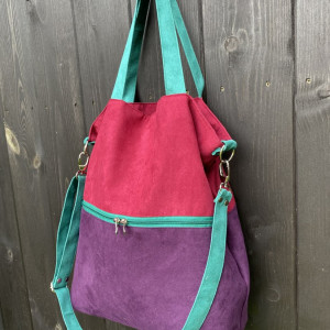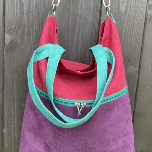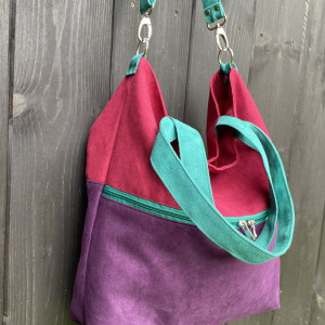 wykonana z alcantary (syntetycznego zamszu) w kolorach burgund, fiolet, jadeit.