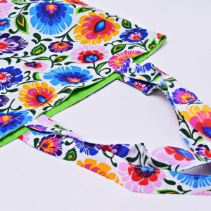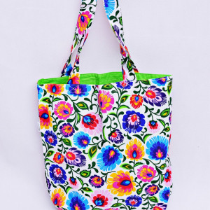 Ekologiczna torba na zakupy uszyta z bawełny 100% z motywem łowickim i bawełnianą zieloną podszewką.