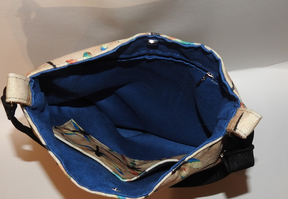 Wewnatrz wykończenie z alkantary, dwie duże kieszenie wsuwane i jedna na zamek. Całość zamyka się na zapięcie magnetyczne.