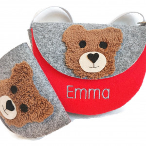 Torebeczka czerwona z imieniem z misiem, portfelik misio
