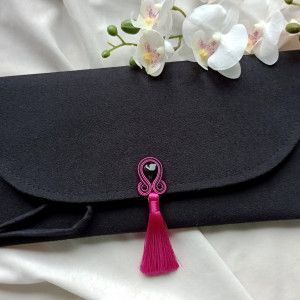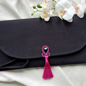 Na życzenie kolor może być dowolny, mam szeroką paletę barw zarówno torebek jak i ozdób soutache. Na życzenie może powstać biżuteria do kompletu (kolczyki, bransoleta, ozdoba do włosów czy pierścionek lub pas do sukienki).