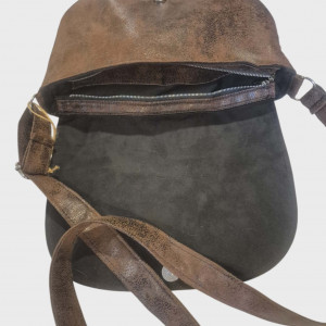 Torebka wykonana jest z luksusowej wersji zamszu alkantara-tkaniny o rewelacyjnych parametrach użytkowych. Tkanina ta jest fabrycznie lekko postarzana co daje ciekawy efekt. Kolor- venge.