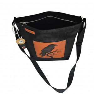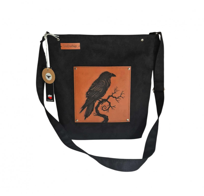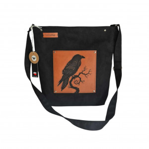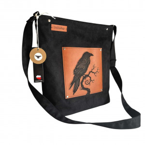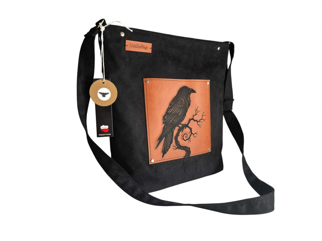 Torebka listonoszka z krukiem, z grawerowaną grafiką