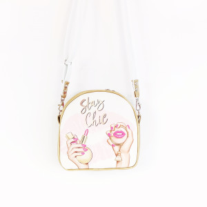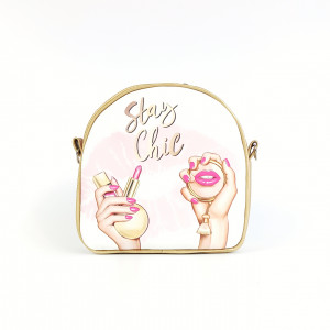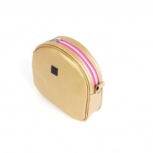 Torebka wykonana jest ze złotej ekoskóry. Przód torebki wykonany jest z panelu z drukowanej ekoskóry. W środku wykończona podszewką w kolorze czarnym.
