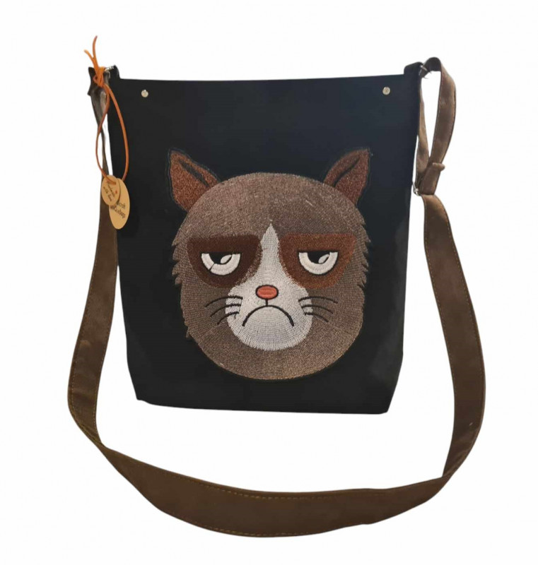 Torebka na długim pasku ponury kot
