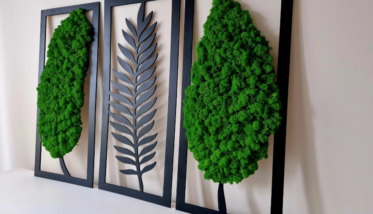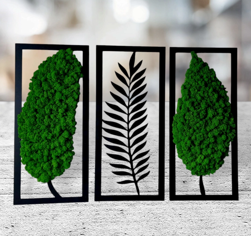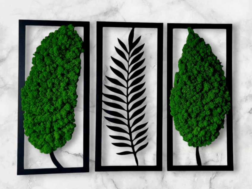 Tryptyk liście mech chrobotek dekoracja dla domu ażur