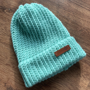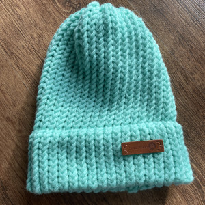 Ciepła czapka wykonana ręcznie z włóczki z dodatkiem wełny Merino.