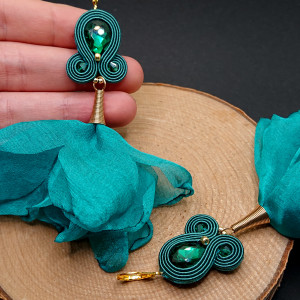 Turkusowe kolczyki sutasz z szyfonem