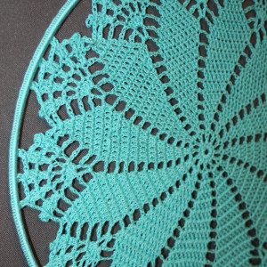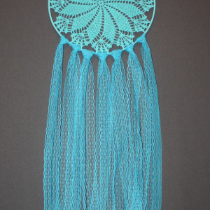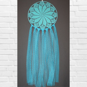 Wykonany ręcznie z bawełnianej nici i koronkowych wstążek. Jako zawieszka służy satynowa wstążeczka. Całość rozpięta jest na metalowej obręczy o średnicy 30 cm. Długość "frędzli" to około 60 cm.