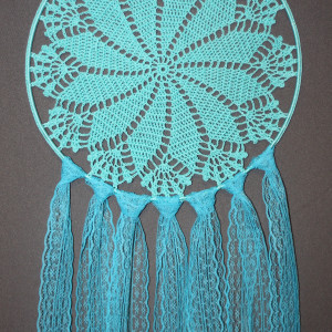 Duży koronkowy łapacz snów z koronkowymi wstążkami. Można go zawiesić na ścianie, lub na oknie. Idealny prezent na babyshower jako dekoracja do sypialni małej dziewczynki. Pomysł na prezent dla kobiety na Walentynki, urodziny, Boże Narodzenie, dla mamy na Dzień Matki.