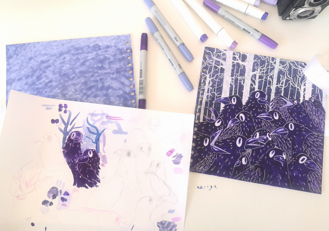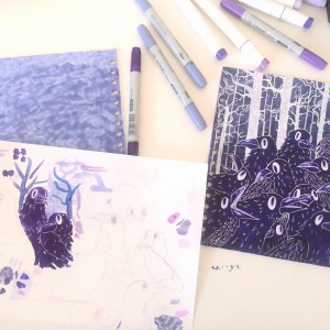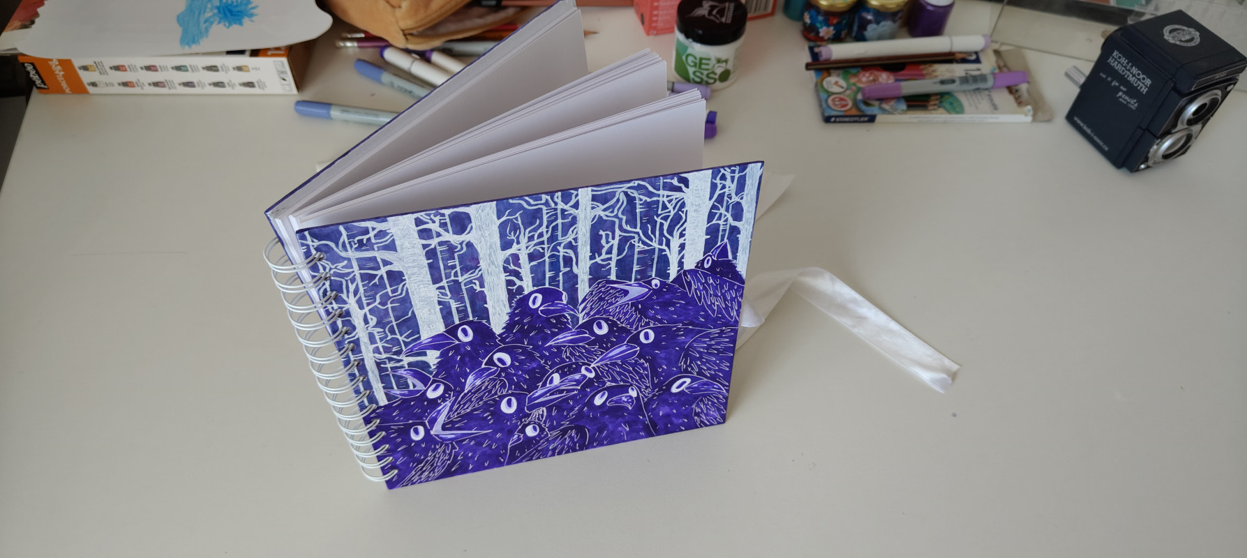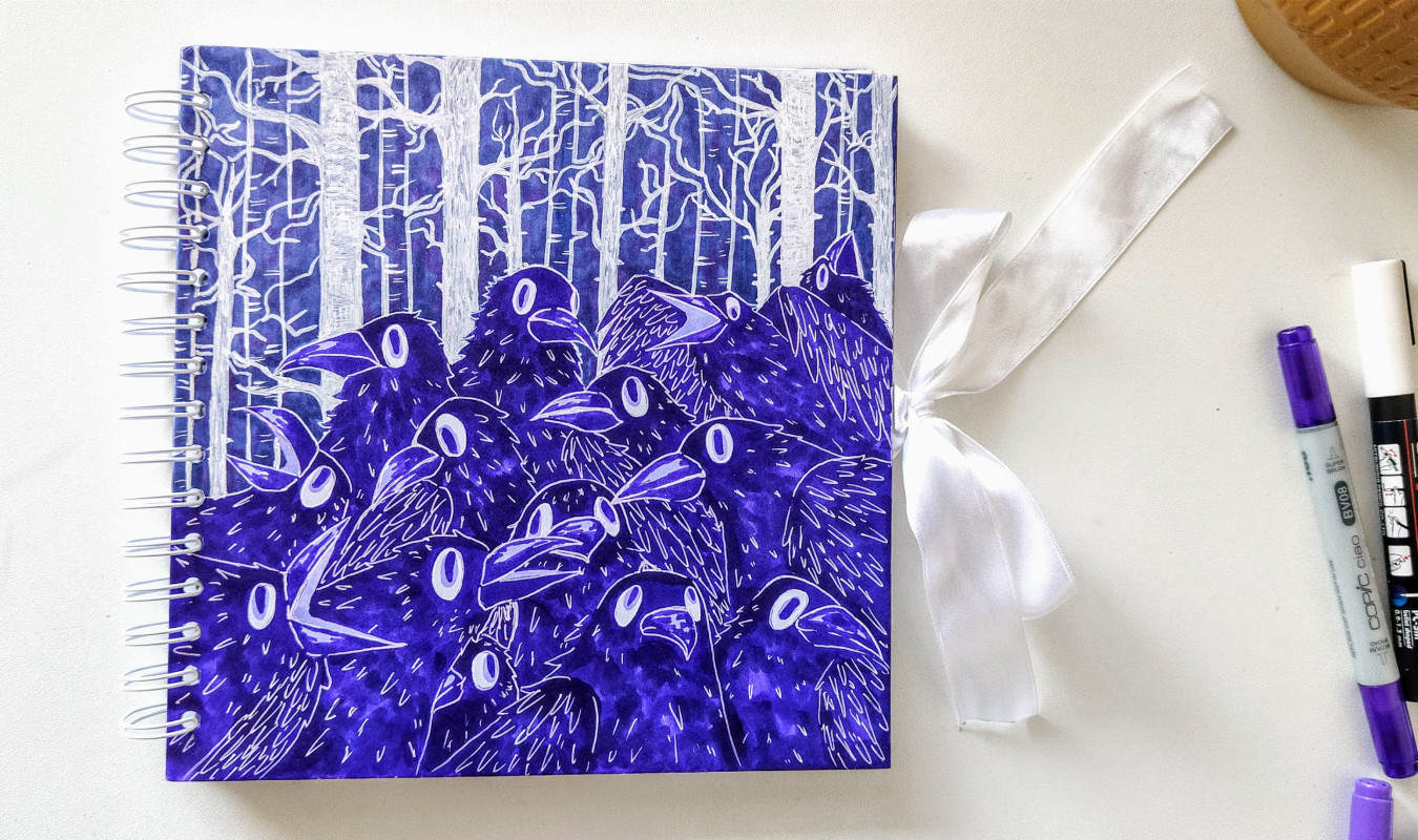Unikalny Ręcznie Malowany Notatnik/Szkicownik/Album z Krukami