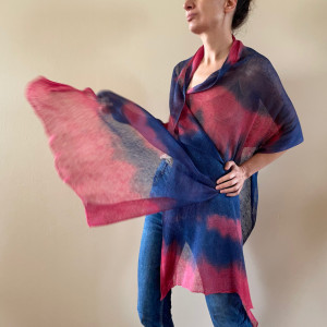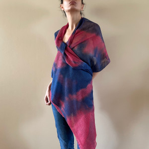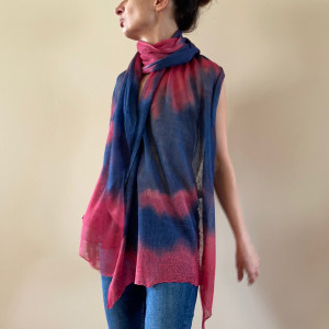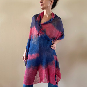 Unikatowy ręcznie barwiony szal ze 100% lnu wysokiej jakości. Uniwersalny, na dzień do dżinsów i na wieczorne wyjście do eleganckiej sukni. W letnie dni ochroni przed słońcem, wieczornym chłodem, czy nadmorskim wiatrem. Możesz szybko zarzucić go na szyję, czy ramiona, a nada stylu każdemu strojowi. Wspaniały upominek dla drogiej osoby.