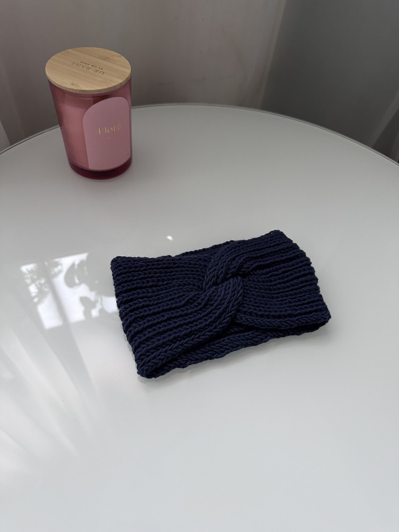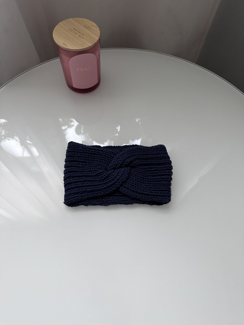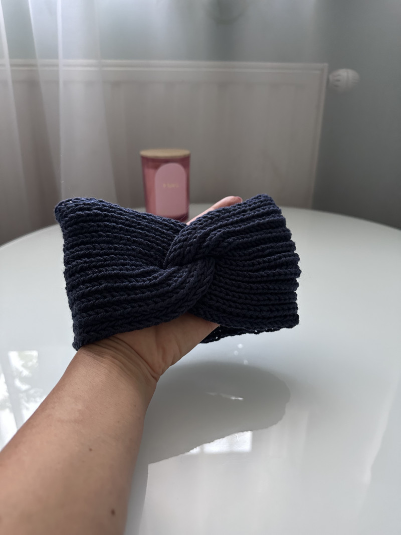 Wełniana opaska twist wykonana jest ręcznie na drutach z naturalnej włóczki, składającej się w 100% z wełny merino