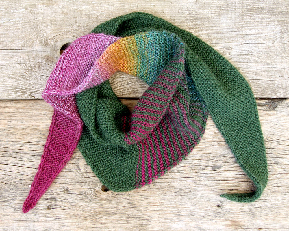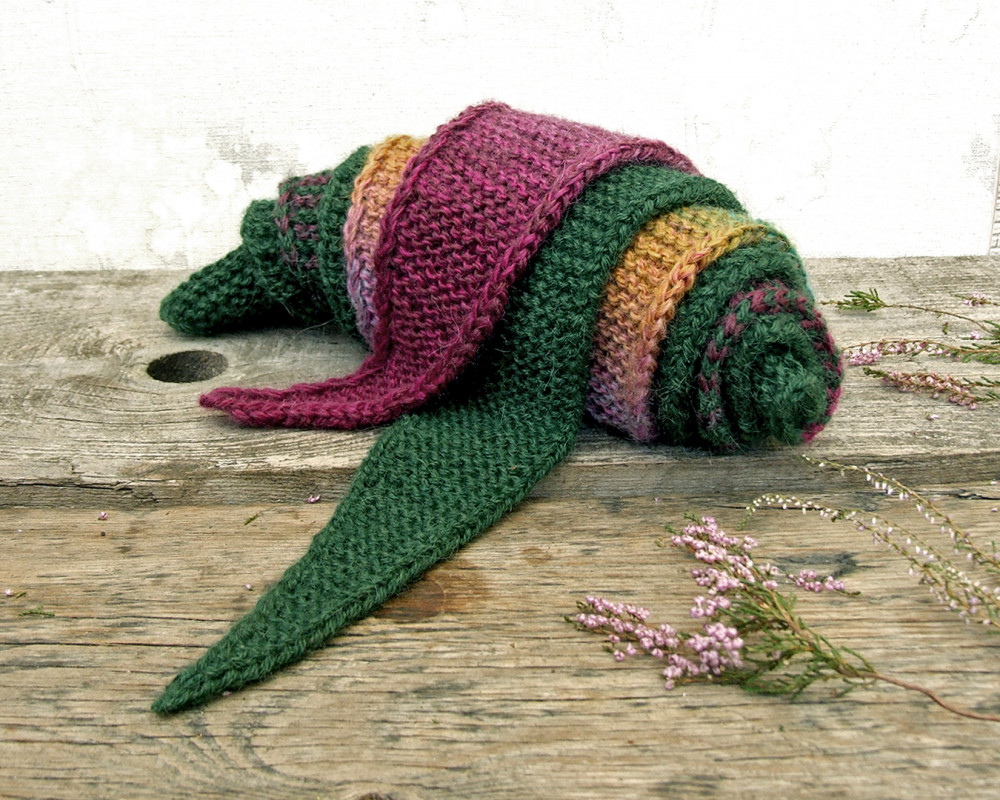 Wełniany szalik - trójkątny szaliczek - Wrzosowisko