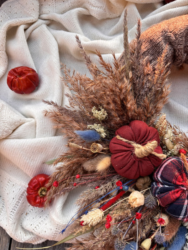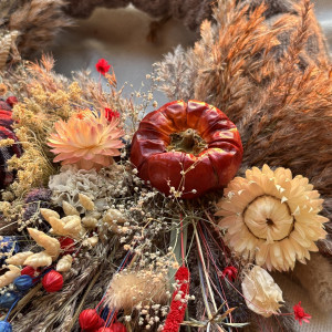 Żywe kwiaty kochają słońce i wodę. Suszone przeciwnie, więc jeśli chcesz by wianek dłużej Cię cieszył, trzymaj go z dala od bezpośredniego działania promieni słonecznych oraz wilgoci.