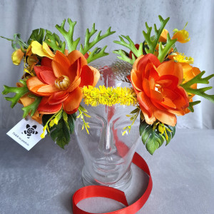 Wianek na głowę, egzotyczne kwiaty, pomarańczowy