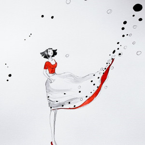 Praca "Wiatr zmian 2" wykonana akwarelami i piórkiem przez artystkę plastyka Adrianę Laube na białym 300g papierze A3. Praca sygnowana, wysyłana w kartonowej tubie.