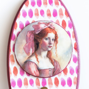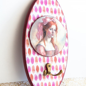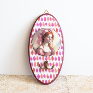 mdf, papier do decoupagu, farba akrylowa, lakier akrylowy, metalowy haczyk, zawieszka