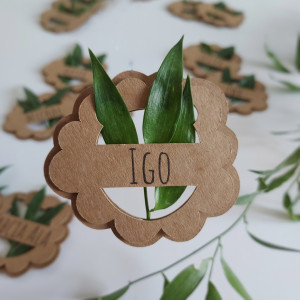 Winietki w kształcie grzywy lwa sprawdzą się idealnie jako dekoracja stołu na przyjęciu z okazji urodzin, chrztu świętego czy zupełnie innej. Ich forma i kształt pozwalają na umieszczenie delikatnej ozdoby. Na zdjęciu dekorację stanowi ruskus, którego nie dodaję do zamówienia, jest to tylko propozycja ozdobienia winietki.