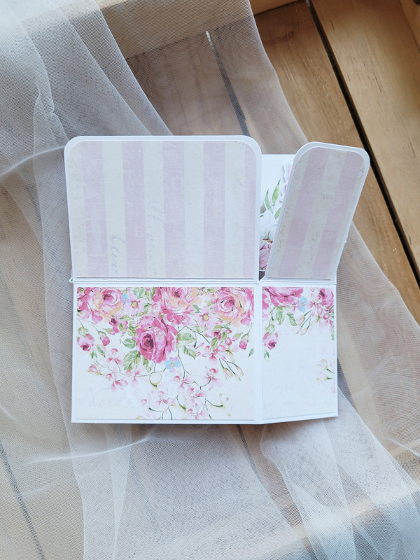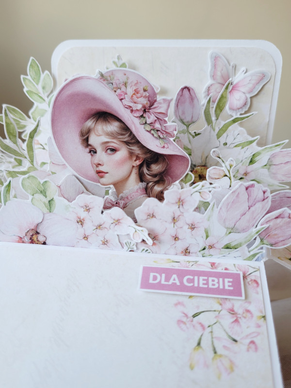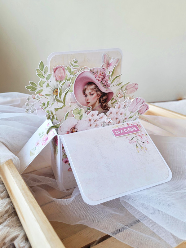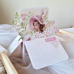 Kartka pop-up box to wyjątkowa, trójwymiarowa forma, która po otwarciu zamienia się w przestrzenną scenkę pełną kwiatów i subtelnych detali. Mimo swojej efektownej konstrukcji kartka składa się na płasko i mieści w kopercie, dzięki czemu można ją łatwo wysłać lub wręczyć osobiście.