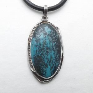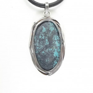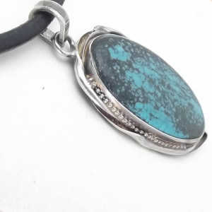 Urzekający, piękny turkus oprawiliśmy w ciemne, polerowane asymetryczne srebro pr925