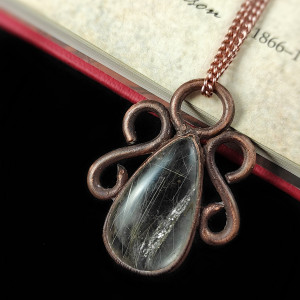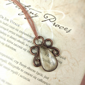 Wisior miedziany kwarc z rutylem Złote Sploty Świtu